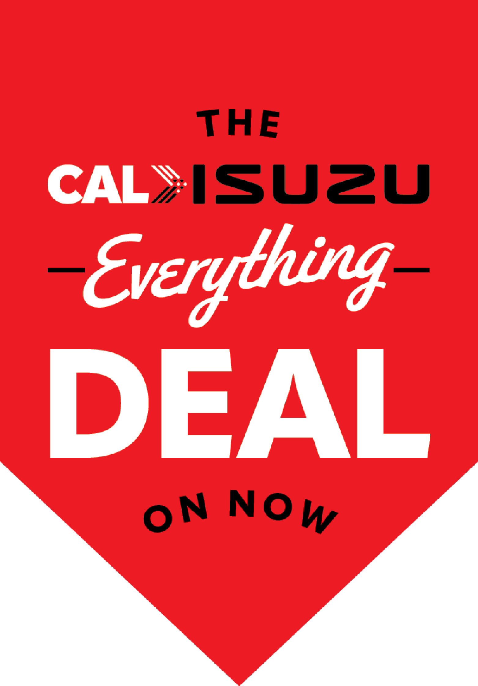 Everything? Yes. All the offers. All at once. Right now. On every truck. No ifs, or buts, or ors. Just ands. The CAL>Isuzu Everything Deal. Get everything, all at once, on anything, anywhere across the CAL>Isuzu network.